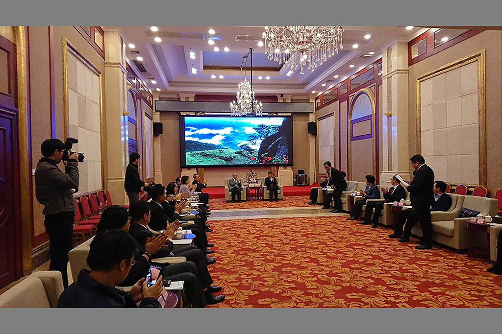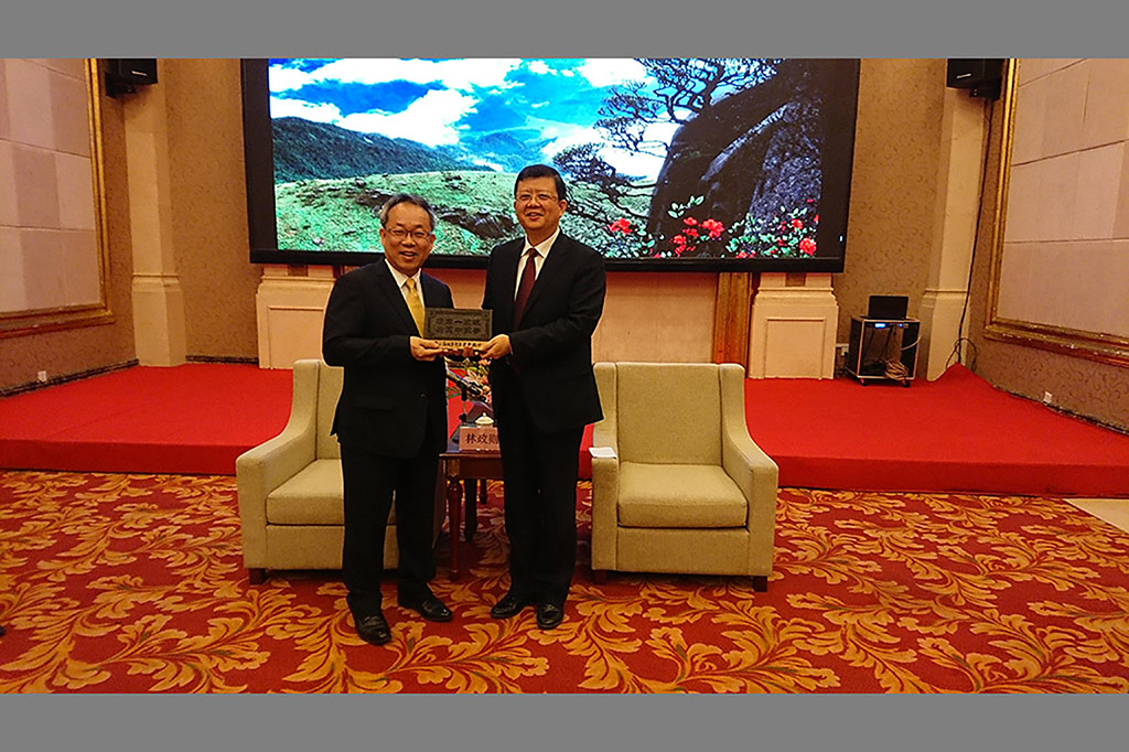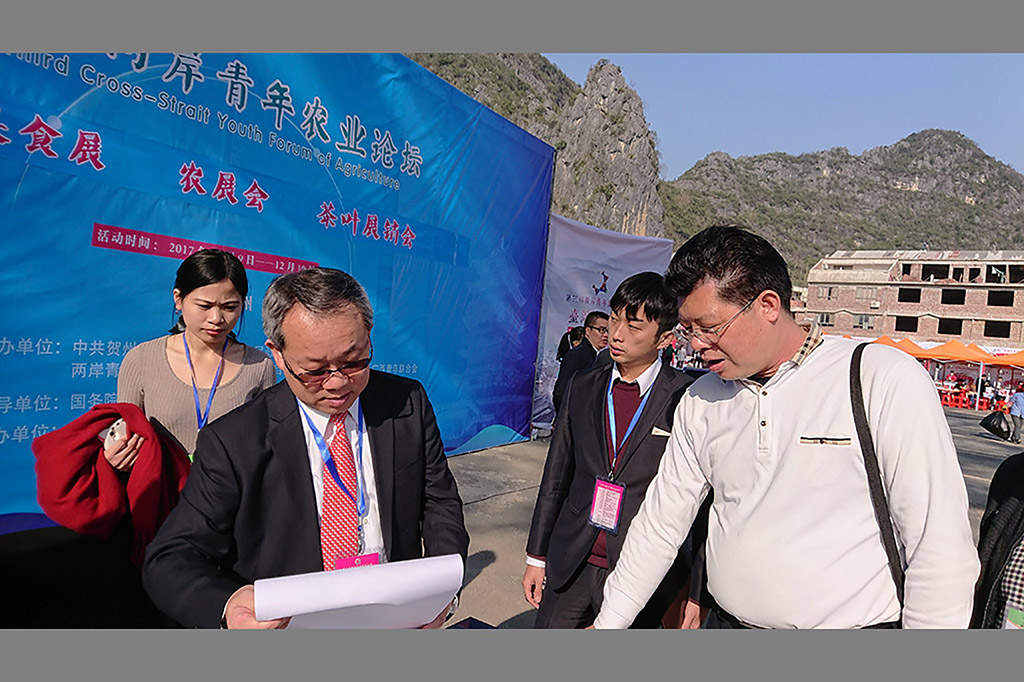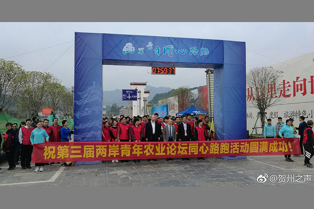 2017年12月9日,中国国民党前代理主席林政则、国台办经济局副局长郑慷、中国光华科技基金会党委书记兼理事长侯宝森、广西自治区台办主任李东兴、共青团广西区委副书记、广西青联主席黄世芳,贺州市委书记李宏庆、两岸青年农业论坛主委张茂林、台湾公教军警暨退休人员联合总会副会长林水吉、中华领袖菁英交流协会会长、中华港澳之友协会副会长兼秘书长张仕贤参加开幕式并浇筑金沙共同启动第三届两岸青年农业论坛。