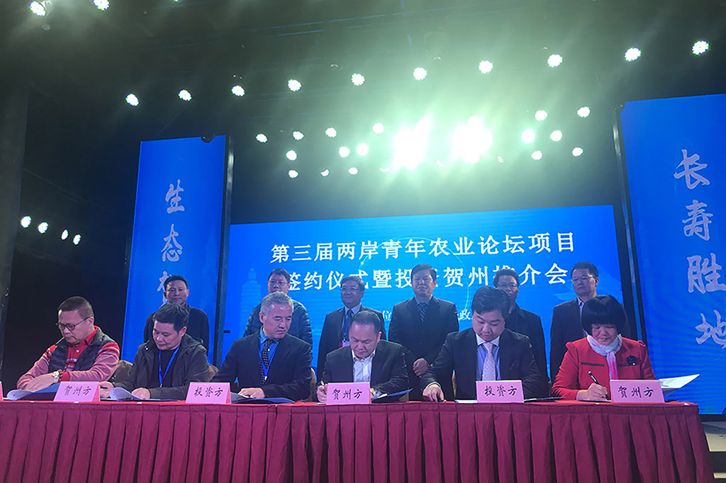 当天下午,在第三届两岸青年农业论坛项目签约仪式暨投资贺州推介会上,现场签约项目6个,项目投资总额7.53亿元,包括四季水果园、红藜观光种植、兰花项目等。此次论坛以「两岸青年携手同心,耕耘农业新未来」为主题,为期三天。期间还将举办两岸青年同心路跑、青农沙龙、两岸农业展、茶叶展销会、台湾美食展、考察农业产业和乡村建设等活动。