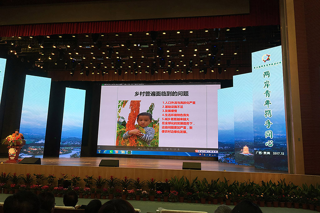 12月10日上午, 第三届两岸青年农业论坛--农业专业技术分论坛在黄姚古镇召开。本次论坛的主题为 「两岸青年携手同心, 耕耘农业新未来」。