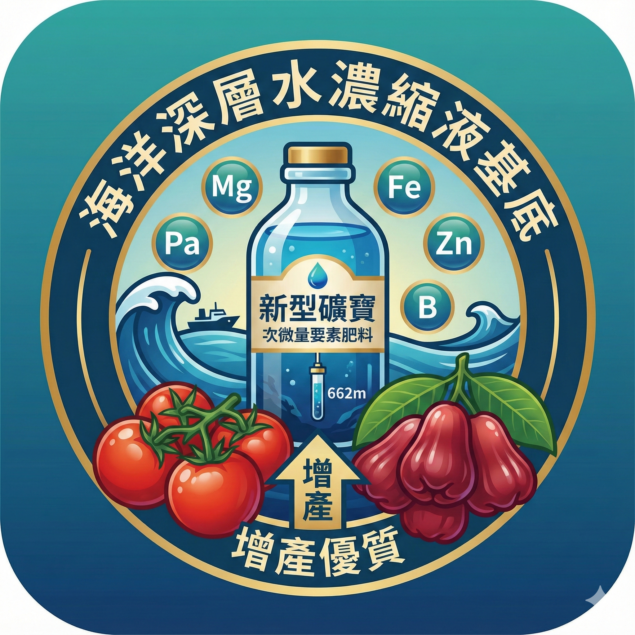 台灣高雄區農業改良場發表「新型礦寶次微量要素肥料」,以662公尺海洋深層水濃縮液為基底...