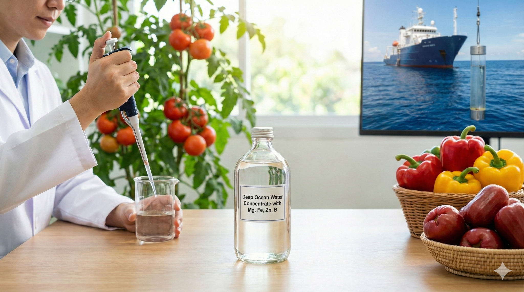 台灣高雄區農業改良場發表「新型礦寶次微量要素肥料」,以662公尺海洋深層水濃縮液為基底,加入作物必需的鎂、鐵、鋅、硼等次微量元素,形成液態複合肥料。經多項作物試驗,可提升果實重量3.7–11.1%及可溶性固形物0.5–2.0°Brix,並改善秋冬季光合作用與營養平衡。產品已取得肥料登記證並完成商品化,具備良好市場拓展潛力。