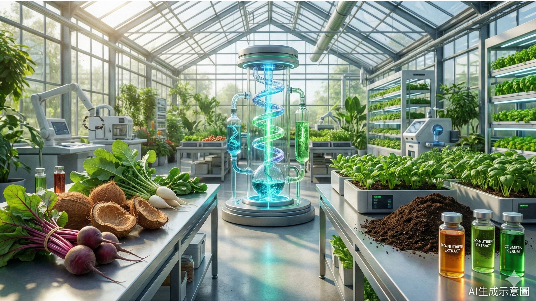 將甜菜渣、椰子纖維到蘿蔔葉等廚餘或農業副產物,轉化為作物防治、育苗介質與健康應用的新資源,促進永續農業發展。
